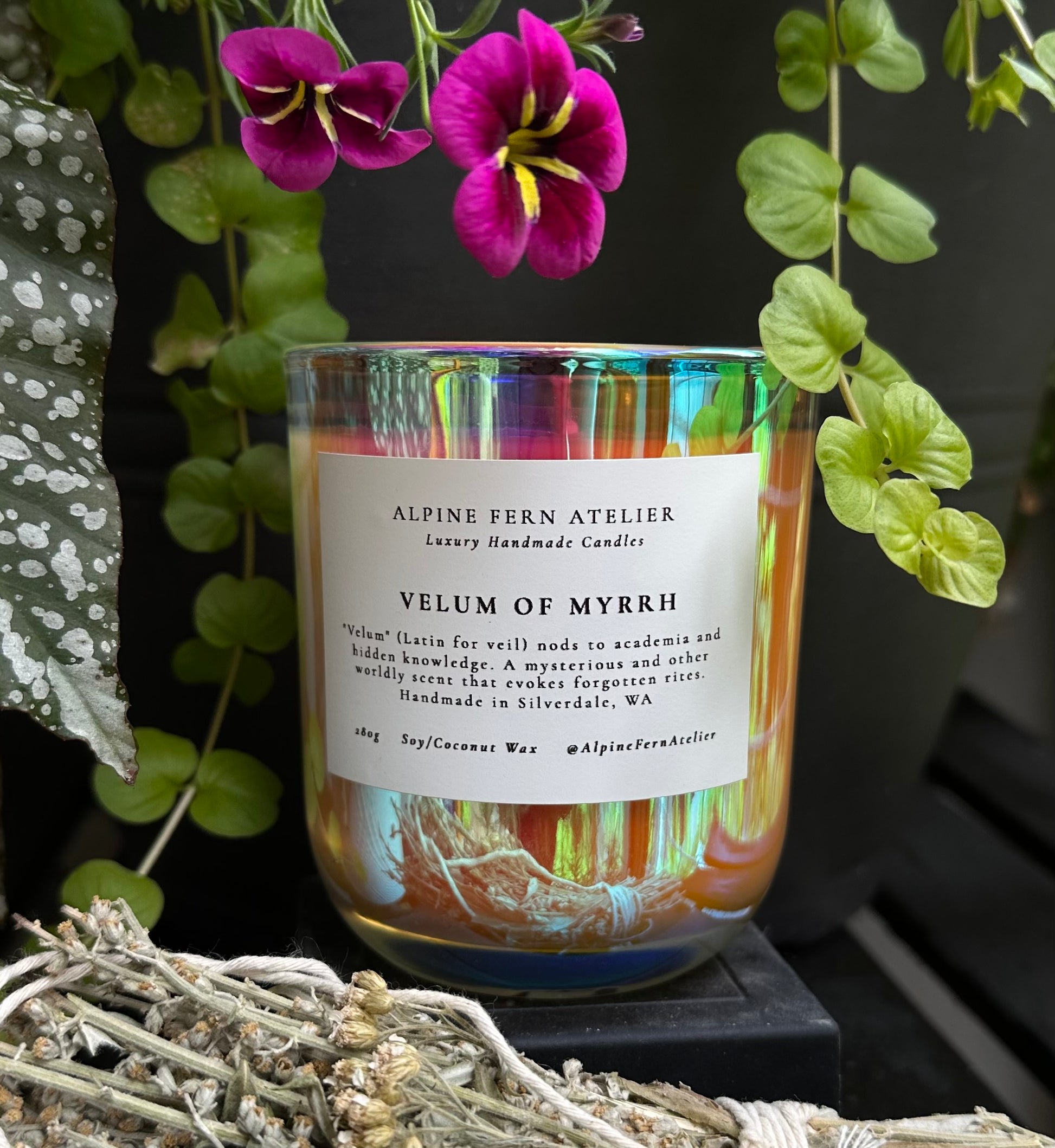 "Velum" (Larin for veil) nods to academia and hidden knowledge. A mysterious and other worldly scent that evokes forgotten rites.